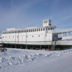 Bei entsprechender Kälte passiert es, das der Fluss, der Yukon River dampft. Das Wasser ist schlicht wärmer als die Umgebungstemperatur.