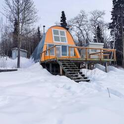 Relativ spät angekommen, erwartete uns ein gemütliches Feuer im Kamin und eine Cabin, die mal etwas andersMeer informatie