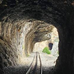Über die Schienen steil nach oben in die Vouraikos Schlucht. Was für eine coole Wanderung mit herrlichen Ausblicken, Brücken und etwas abenteuerlichen Tunneln.