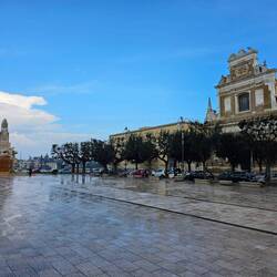 Schön, wieder die typische Architektur einer italienische Stadt zu spüren und zu sehen. Auch wenn der kleine Regen Schauer uns zu einem kleinen Stopp verleitet hat.