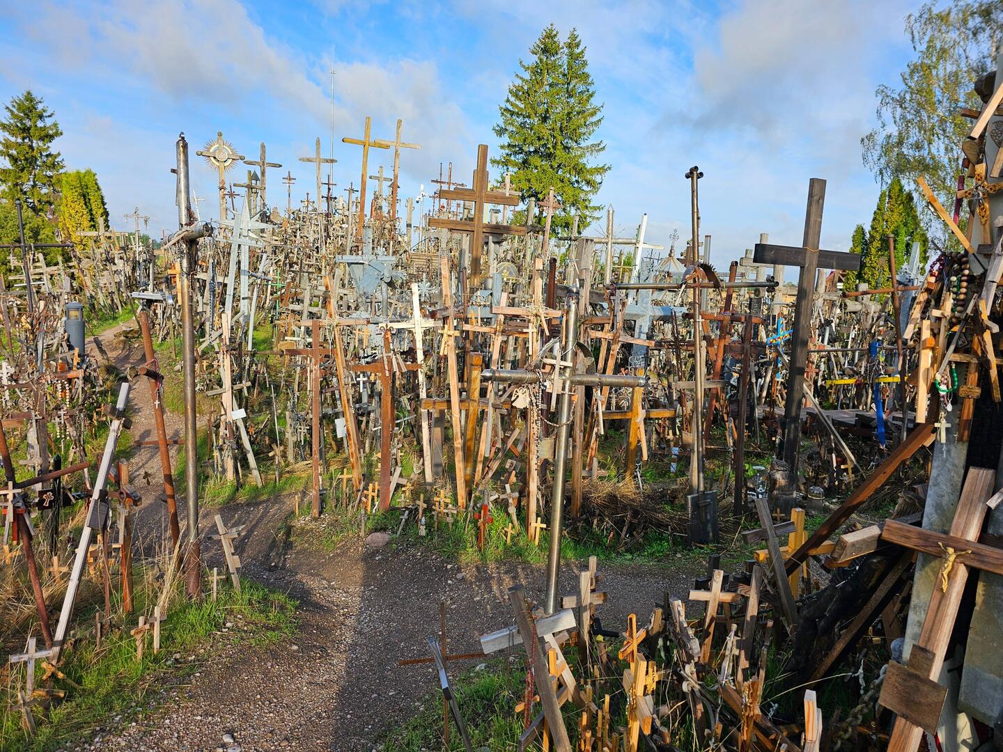 Heute haben wir zuerst den Kreuzhügel, den *Kryžių kalnas*, besucht. Es war ein ziemlich beeindruckender Anblick – Tausende von Kreuzen, die dicht an dicht stehen, und jeder einzelne hat seineBaca lagi