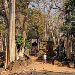 Leider fühlte sich Simone noch nicht fit genug, um den Aufstieg zu wagen. Sie ließ den Tag etwas ruhiger angehen und genoss die Atmosphäre rund um den Tempel. Auch ohne den Aufstieg war Koh Ker für sie beeindruckend.