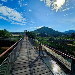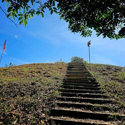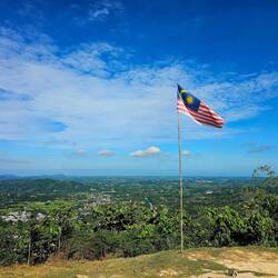 Für mich ging es auch hoch hinaus – und zwar auf den Gipfel von Bukit Perahu! 1106 Stufen, dazu noch einige Höhenmeter extra. Klingt machbar? Naja, die Stufen waren steil, teilweise so hoch, dass man sich an einem Seil festhalten musste. Ganz schön anstrengend! Aber oben angekommen, hat sich die Mühe gelohnt.