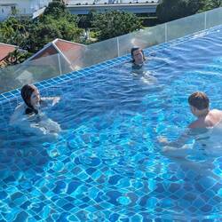 Esther, Susi, Leonie und Moritz sind zu Besuch und wir feiern das Wasserfest Songkran.
