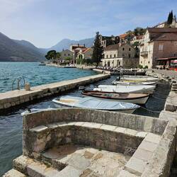 Wir waren heute in Perast, einem Ort an der Bucht von Kotor. Gut erhaltene barocke Gebäude und die Aussicht auf die beiden kleinen Inseln vor der Küste, St. Georg und die künstlich angelegte InselBaca lagi