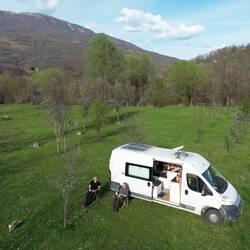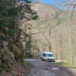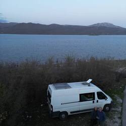 Eigentlich wollten wir hier gemütlich stehen, morgens noch etwas arbeiten und dann weiter nach Prizren. (Als wir angekommen sind, war Sonne, kein Schnee und trocken)