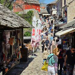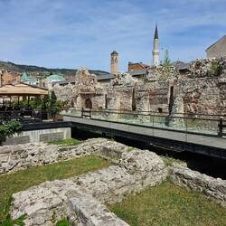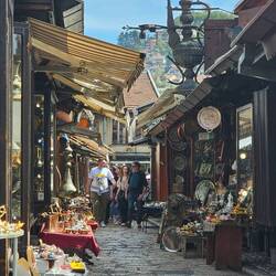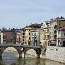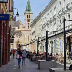 Quirlige Altstadt trifft auf moderne wieder aufgebaute Stadt nach dem Bosnien Krieg.