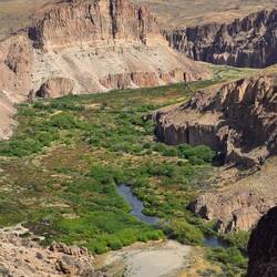 Heute ging es auf eine Wanderung durch den Cañadón del Río Pinturas bis zur Cueva de las Manos. Anstrengend, ziemlich lang, aber mit genialen Aussichten – und am Ende absolut lohnenswert.