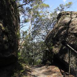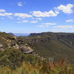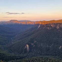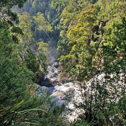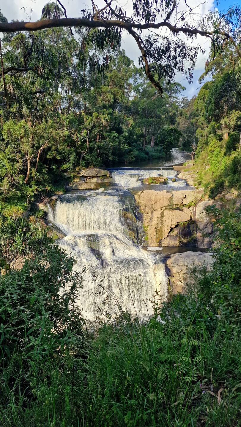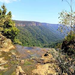 Danach gehts nochmal zum Carrington Falls, dieses Mal mit Platz auf dem kleinen Parkplatz. Der Carrington Falls ist ein ca. 50 Meter hoher Wasserfall über dem Kangaroo River. Der Loop ist nur etwa 600 Meter lang, mit ein paar Aussichtspunkten und dem Zugang zum Fluss, bevor er hinunterfällt. Auch hier kann man ins kühle Nass eintauchen, muss sich aber vor den Steinen in Acht nehmen. Nahe dem Wasserfall gibt es nur wenig tiefe Stellen. Zur Erfrischung reichts, insbesondere bei den über 30 °C.