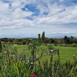 Da ich erst um 3 Uhr ins Hotel kann und ich nicht mit dem Auto in der Stadt rumkurven wollte, halte ich nochmal im Botanischen Garten. Das Wetter ist zwar nicht deutlich besser als gestern aber immerhin sieht man die Mountains doch ein wenig.