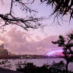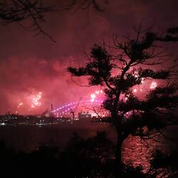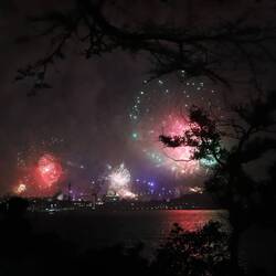 Kurz vor 12 muss sich dann geschwind gut positioniert werden, nicht so einfach mit den Bäumen überall. Ich möchte die Harbour Bridge sehen, was auch einigermaßen funktioniert. An der Brücke wird der Countdown runtergezählt, was hier nicht viele mitbekommen. Es ist irgendwie eine beängstigende Stille. Privat darf nicht geböllert werden, das darf nur die Stadt. Also heißt es warten bis es losgeht. Der Countdown läuft aus... und... ich glaub da hat wer den Knopf zu spät gedrückt. Egal... für fast 15 Minuten wird geböllert was das Zeug hergibt. Von Booten und an der Brücke... herrlich.... kann man mal erlebt haben.