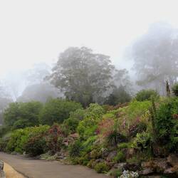 Schon auf dem Weg steht allerdings fest, das wird nichts mit der Aussicht. Es wird immer verhangener und nebliger. Natürlich hat das auch seinen Reiz, die aus dem Tal aufsteigenen Wolken oder auch verhüllte Straßen 🤨 ich bleibe solange es nicht regnwt im botanischen Garten, welcher auch ganz hübsch angelegt ist. Er besteht zur Hälfte aber aus kleinen Wäldern zum Spazieren. In der Mitte des Parks finden sich viele einheimische Pflanzen.