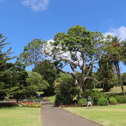 Und genau so ist es. Es ist der letzte volle Tag in Sydney, also rein in die Massen. Eigentlich wollte ich zuerst auf den Sydney Tower Eye, aber wie es so ist, ich konnte mich nicht für eine Uhrzeit entscheiden und nun steh ich vor dem Turm und natürlich sold out. Also buche ich den Besuch für Nachmittags und gehe nochmal zum Harbour. Ich muss nach ein paar Souvenirs Ausschau halten, was natürlich hier am Fährhafen genau das richtige für mich ist: immer mitten durch die Massen😟. Da es entschieden zu heiß für irgendwas großes ist, schlendere ich lieber durch den botanischen Garten. Auch hier sind die Aufbauten von Silvester noch allgegenwärtig. Aber vor allem der Blick auf Oper und Harbour Bridge ist toll.