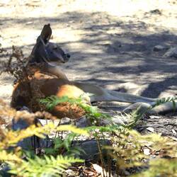 Gegen Nachmittag halte ich noch an dem Wildlife Walk. Hier soll man gut Tiere beobachten können. Allgegenwärtig aind natürlich wieder die Kängurus. Viele tragen Marken, da sie hier in einem Forschungsgebiet leben. Auch ein paar Emus lassen sich blicken, und natürlich die weißen Kakadu. Auf dem Rückweg, ich hab schon fast aufgegeben, erzählt mir ein Besucher, er habe einen Wombat gesehen - na toll. Ich folge einem Pärchen off the path und tatsächlich finden wir das putzige Tierchen. Es post zwar nicht unbedingt, lässt sich aber von uns auch nicht stören, sondern setzt seine Suche nach Essbarem einfach fort. So süß! Also, Wombat in freier Wildbahn? Check!