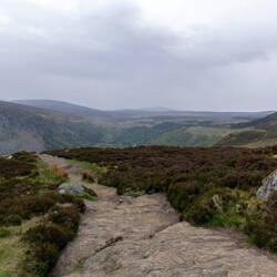 Am nächsten Tag geht es dann auf eine Rundfahrt durch die Wicklow Mountains, welche eigentlich schon am südlichen Stadtrand von Dublin beginnen. Hier kann man noch von Einsamkeit und Wildnis reden. Es gibt jede Menge Moorland, Hügelketten und Täler zu erkunden. Nicht umsonst wird der Nationalpark "Garten Irlands" genannt, dies umso mehr, da es hier auch wunderschöne Parks und Gärten rund um die prachtvollen Landsitze und historischen Gebäude zu sehen gibt. Die Fans romantischer Filme mögen vielleicht auch direkt an "P.S. Ich liebe Dich" denken, in denen sich die Hauptdarsteller genau hier das erste Mal treffen. Leider ist nicht die richtige Jahreszeit, um die tolle Heidekrautblüte mit ihren wundervollen Farben zu erleben. Auch das Wetter ist, nun sagen wir, irisch schön, es sind immerhin zweistellige Temperaturen! Es hat leider angefangen zu - in Ermangelung des irischen Wortschatzes dafür nenne ich es einfach mal - regnen. Ich begebe mich also, immer noch leicht geschwächt, erst nach Glendalough und spaziere etwas um den Lower Lake. Danach fahre ich noch eine der schönsten Autostrecken der Wicklow Mountains, die Military Road, die über einige Hügelketten in die wildesten Regionen der Bergregion führt. Da Sonntag ist, kann man das Verkehrsaufkommen hier wohl als hoch bezeichnen, wenn einem auf 10 Kilometern etwa 20 Autos entgegen kommen. Und doch bin ich erstaunt, mit welcher Geschwindigkeit und Rücksichtslosigkeit hier manche über die schmalen Straße düsen - immer diese Touris!