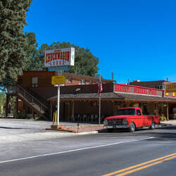 Vorher passiere ich jedoch noch das kleine Örtchen Seligman, der selbsternannten Geburtsstätte der Route 66. Und genauso sieht es hier auch aus, an fast jedem Haus sieht man die berühmten zwei Zahlen, Souvenirläden häufen sich. Ich habe hier allerdings einen Stopp eingelegt, um im Westside Lilo's Cafe, deren Besitzerin einer deutsche Auswanderin ist, ein schönes Schnitzel zu essen? Der Laden ist zwar ziemlich amerikanisch, aber überall an den Wänden hängen deutsche Erinnerungen: Photos, Autokennzeichnen und ein ausgestopfter Hirschkopf! Das Schnitzel ist riesig und lecker!