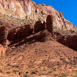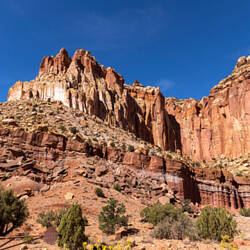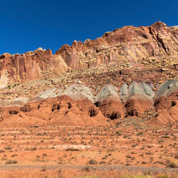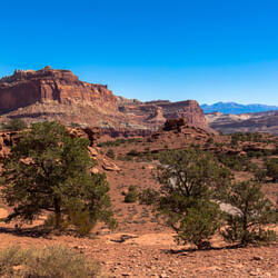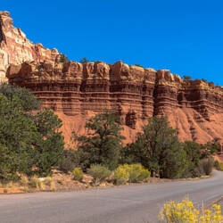 Am Freitag nun steht eine Ausfahrt zum Capitol Reef National Park an. Bei der Einfahrt im Westen wird man direkt mit grandiosen Felsformationen empfangen. Es gibt einen 10 Meilen langen Scenic Drive, der in einer Schotterposte für Allrad endet, ebenso wie ein paar Abfahrten auch nur für Allrad zu befahren. Schick ist auch die grüne Oase im Fremont River Valley, in dem man im Sommer kostenlos Obst selbst pflücken und genießen kann.