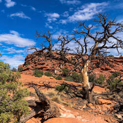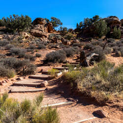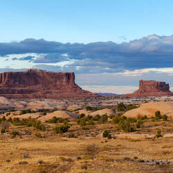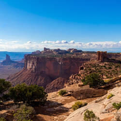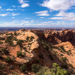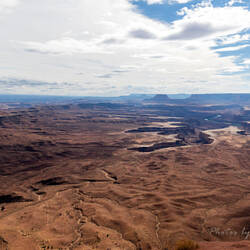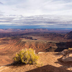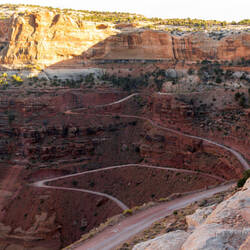 Für Abenteurer gibt es hier auch noch was: die White Rim Road. 100 Meilen Offroadpiste durch die Wildnis. Natürlich nur mit entsprechendem Gefährt, Allrad oder Motorrad, zu befahren. Nachdem man auf einer unbefestigten Straße steil nach unter gefahren ist, verläuft diese entlang der namensgebenden Abbruchkante oberhalb der Schluchten des Colorado und Green River. Viel Spaß wer sich in die Wildnis wagt. Aber ich glaube, der Weg nach unten ist wohl der schwerste Teil, danach muss man sich wohl eher mit der Geschwindigkeit zügeln, um nicht auf Felsbrocken aufzusetzen. Meinen Camper reicht natürlich der Ausblick von oben?