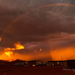 Gegen 7 Uhr morgens wache ich dann doch von Donnern und leichtem Regen auf und bin froh, dass es so ist. So kann ich ein paar tolle, wenn auch wolkige Sonnenaufgangsphotos schießen. Dann gesellt sich auch noch ein Regenbogen dazu. Irgendwie schön hier...