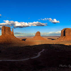 Es ist schon irgendwie eigenartig, wenn die eigens in und für die USA gekaufte SIM-Karte auch nur noch Roaming anzeigt. Bin ich in einem anderen Land? Irgendwie schon... Das Tal ist Teil des Navajo Nation Reservation, gehört also den Navajo mit ihren eigenen Regeln und Gesetzen. Irgendwie spannend, auch wenn man nur wenig davon mitbekommt bzw. viel zu wenig darüber weiß. Ich besuche heute das berühmte Monument Valley mit seinen bizarren Gesteinsformationen, die wie aus dem Nichts aus dem Boden geschossen zu sein scheinen. Das Tal ist auch kein National-, sondern ein Tribal Park. Auf der Zufahrt zum Eingang überschreitet man dann auch wieder eine US Bundesstaatsgrenze: ich fahre heute also zwischen Utah, Arizona und der Navajo Nation hin und her.