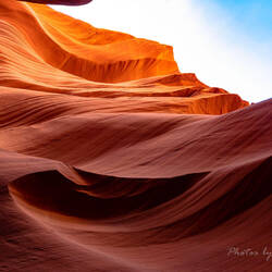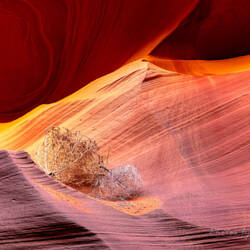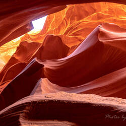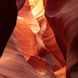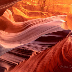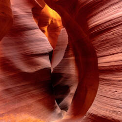 Am nächsten Morgen mache ich mich also meiner Ansicht nach pünktlich auf den Weg. Aber irgendwie zeigt mein Navi schon wieder eine Stunde mehr an als ich dachte... nun ist auch das Gerät vollkommen verwirrt von den Uhrzeiten hier. Ich habe in Utah übernachtet und fahre jetzt wieder nach Arizona, wieder eine Stunde weniger. Ich komme also pünktlich an. Puh. Es geht in den Lower Antelope Canyon. Hier geht man nicht einfach nur durch, man klettert Stufen hinunter und zwängt sich durch enge Gänge. "Keine Photos auf den Treppen" sagt unser Guide und ergänzt direkt, dass es ihm eigentlich egal sind, seine Regel ist nur, dass wir zusammen bleiben. Aber wenn uns die anderen Guides erwischen? Und tatsächlich gibt es einen Typen, der wieder rausgeworfen wird, natürlich nicht aus unserer Gruppe. Die Tour ansich ist irgendwie wieder Massenabfertigung, und dabei ist der Lower Canyon angeblich der kleinere Touristenmagnet. Jede halbe Stunde werden ungefähr 40 Leute in kleineren Gruppen losgeschickt. Entsprechend kann man sich den Stau überall vorstellen. Die Sache hat allerdings etwas positives: man bekommt zwar relativ selten Bilder ohne Menschen, wenn man den Gang photographieren will, aber dafür hat man reichlich Zeit sich umzusehen und Bilder zu schießen - es geht ja nur schleppend voran. Was man hier jedoch sieht, ist faszinierend. Die vielen verschiedenen Formen und Bögen, geschaffen von Wind und Wasser. Leider gibt es im Lower Canyon kaum Lichtshots, ich bin dennoch hin und weg. Ich kann mich später kaum entscheiden, welche Bilder ich hier einstellen will. Irgendwie einfach nur cool.