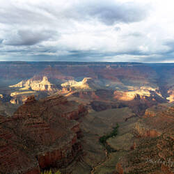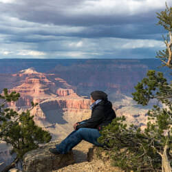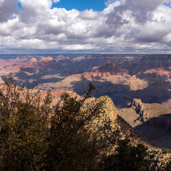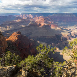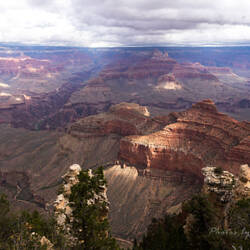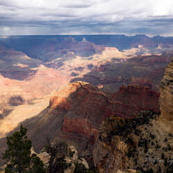 Am nächsten Tag geht's dann auf in den Grand Canyon... Und was soll ich sagen, er ist wirklich... groß! Der Park ist gut organisiert, es gibt ein tolles Visitor Center mit einem Film über die Entstehung. Und natürlich wieder die beliebten Shuttlebusse. Die Fahrer sind mehr Touristenführer bzw. Entertainer, auch wenn sie es mit denn (sogar jetzt noch) Massen von Touristen nicht einfach. Ich fahre ein Stück mit dem Auto durch den Park und nehme dann den Bus zum Hermits Rest. Zwischendurch steige ich aus und wandere entlang des Rim Trail. Ich bin ja kein großer Freund des Wanderns, aber diese Wege, die so schön entlang von Klippen gehen und vielleicht noch ein wenig klettern beinhalten, finde ich einfach toll. Und die Aussicht ist hier ja spitzenmäßig.
