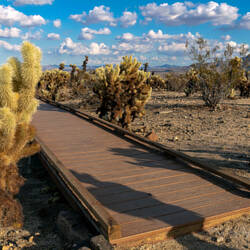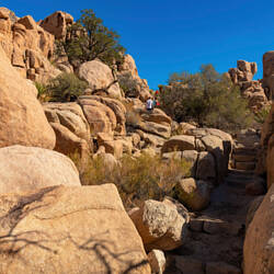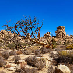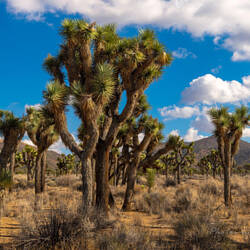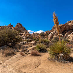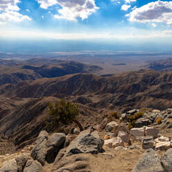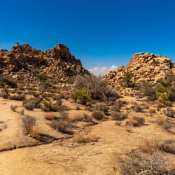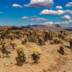 An diesem Morgen geht's dann in den Joshua Tree National Park. Dieses Schutzgebiet ist durch schroffe Gesteinsformationen und karge Wüstenlandschaften gekennzeichnet. Der Park wurde nach den für die Region typischen, bizarr geformten Josuabäumen benannt. Diese Bäume sehen echt witzig aus. Natürlich gibt es wieder eine Gut ausgebaute Straße durch den Park, die zu verschiedene Trailheads, Aussichtspunkte und Picknickplätze führt. Der beste Aussichtspunkt ist Keys View, welcher einen tollen Blick über das Tal Coachella bietet. Ich fahre bis zum Cholla Cactus Garden. Diese Kakteen werden bis zu zwei Meter hoch, haben einen dunklen Stamm und neue Triebe in hellen Farben. Danach muss ich leider umdrehen, da der Südeingang gesperrt ist.