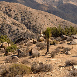Weiter geht's dann zum Mojave Preserve. Es erwartet mich wieder eine Fahrt durch interessante Wüstenlandschaften. Übernachten möchte ich mittendrin auf dem Hole-in-the-wall Campground. Da ich den Weg über das Visitor Center in Kelso genommen habe, erwartet mich nun leider eine über mehrere Meilen führende Buckelpiste. Einmal angekommen fahr ich hier nicht mehr weg, stattdessen werden ein paar Photos und ein Lagerfeuer gemacht - heute muss mal die amerikanische Tradition der Marshmallows ausprobiert werden. Hmm, schmeckt irgendwie wie Zuckerwatte, süß natürlich, kann man mal so machen in der Atmosphäre?