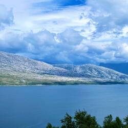 Immer an Fjorden entlang und an glatt geschliffenen Felsen…überall kleine Wasserfälle, da das Wasser auf dem kargen Gestein nichts zurückhält…einfach atemberaubend schöne LandschaftLes mer