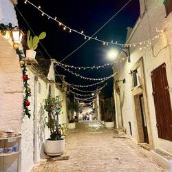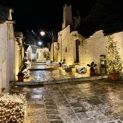 In Alberobello angekommen haben wir den Hundis erst einmal eine Ruhepause gegönnt und den Regen abgewartet… da sind wir durch das abendliche Alberobello spaziert 🎄🇮🇹