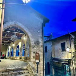Zum Sonnenuntergang begaben wir uns in die Stadt von Westen aus und waren überrascht wie schön dieses Dorf ist … morgen gehen wir nochmal bei Tageslicht hinein 👍🇮🇹😎🎄