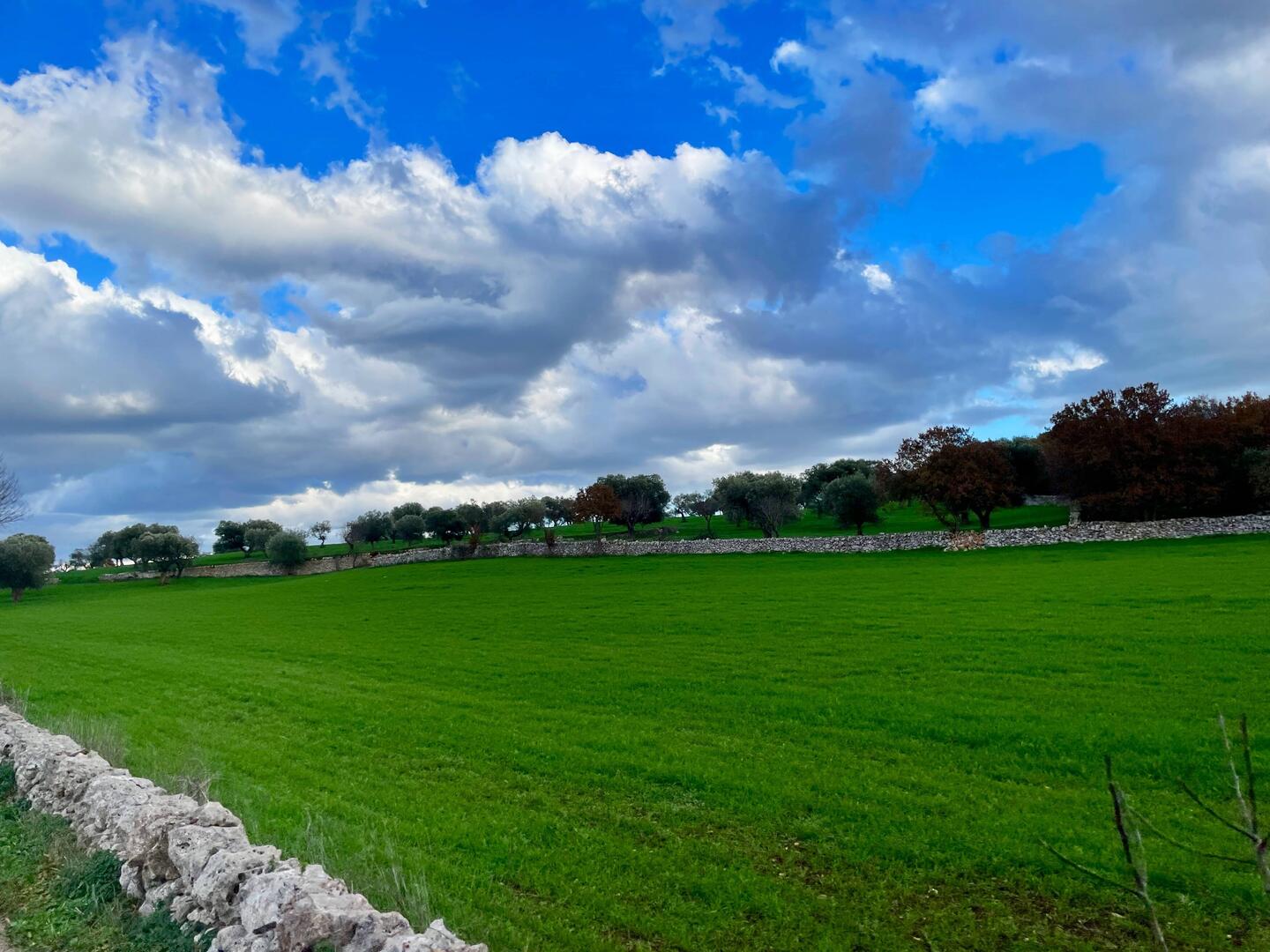 In Richtung Alberobello ändert sich die Landschaft… saftiges Grün, Steinmauern und dunkelbraune Erde …