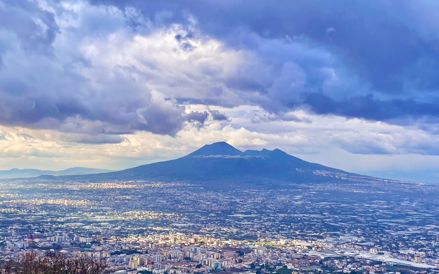 … dann kommt man von der Amalfiküste über den Bergpass … und hat einen fantastischen Blick auf den Vesuv als auch über die sehr flächigen Ortschaften