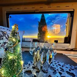 Zum Sonnenuntergang begaben wir uns in die Stadt von Westen aus und waren überrascht wie schön dieses Dorf ist … morgen gehen wir nochmal bei Tageslicht hinein 👍🇮🇹😎🎄
