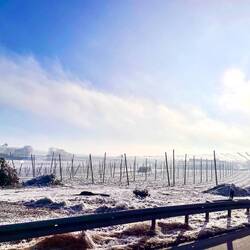 Auch von der Autobahn hat man schöne Ausblicke auf die leeren Hopfengestelle in der Hallertau…. Schön mit Raureif 🥶