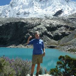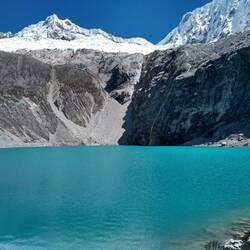 De volgende dag trekken we de natuur in. Om 4u15 gaat onze wekker, een halfuur later zitten we op de bus richting Laguna 69 samen met 25 andere toeristen. Vooral Fransen, dat zijn we hier al gewoon ondertussen. In de verte verschijnen de eerste besneeuwde bergtoppen. Na het ontbijt stoppen we om wat foto’s te trekken van de 2 Llanganuco meren. Er is een “mannelijk” en “vrouwelijk” meer die beiden een felle turquoise kleur hebben.