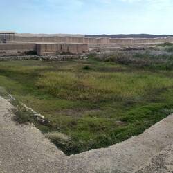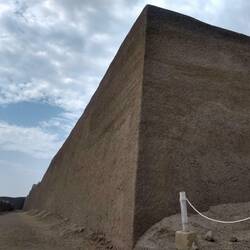 Alles werd gebouwd van adobe (een mengeling van modder, schelpen en stro) waardoor grote delen nu vernietigd zijn door erosie van regen en wind. Een paar jaar geleden bouwde men een extra dak boven de tempel om verdere afbraak te voorkomen.