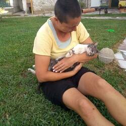 En dan gebeurt er iets geweldig. Door de goeie zorg begint Negra plots enorm gehecht te raken aan Vé. Elke keer als Vé in de buurt komt begint haar staartje te kwispelen. Wanneer ze uit haar kooi mag, springt ze rond Vé haar benen en laat ze zich stevig aaien en knuffelen. Het is mooi om te zien! Het lijkt er op dat ze nu niet zo snel meer zal ontsnappen, als ze weet dat ze hier veilig is bij Vé.