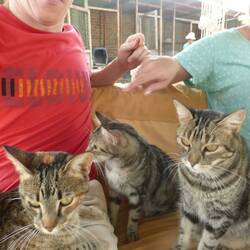 De grote asgrijze Cinders is een echte knuffelbeer. Hij heeft graag dat we over zijn kopje en neus wrijven en begint direct te ronken. Vervolgens klimt hij met zijn voorpoten op onze schouders en geeft hij ons echte knuffels. Pantera is een mager oud zwartje dat continu de keuken probeert binnen te glippen om eten te zoeken. En zo zijn er nog veel meer lieve haarballetjes in de buurt.