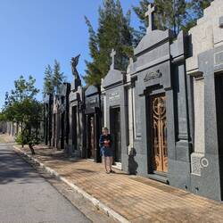 Today was going to be very hot. It was forecast to go up to 30 degrees. As such we decided to get going early. We were away by 8 am and opted for an Uber rather than the bus as the bus connections to the Chacarita cemetary were poor. The rich and famous people between the late 19 century and mid 20 century buried themselves and families in these ornate mausoleums. It was like a city of the dead. Some of the mausoleums had fallen into disrepair and one could even look into them seeing the caskets of the buried. We found the much visited tomb of Carlos Gardel, a musician, composer, band leader known for his Tango music who died in a plane crash in 1935 at age 45. People come on the anniversary of his death to Tango at his grave. After wandering around for a while we tired of the cemetary. It wasn't to hot so we headed off on the bus to the botanical garden which was the most enjoyable thing we did today. It was one of the best botanical gardens we have visited. Like all gardens it was divided into various gardens based on the region and the design. My favorite was the Roman garden constructed to feel like an ancient garden with statues and ponds. The garden was beautifully shaded. I don't think that I have ever seen so many butterflies and we even saw a humming bird.Lots of school groups. The teachers of one school group were speaking English so we started talking to them. They were so excited as they wanted the students to interview us and practice their English. We were the stars of the botanical gardens for 10 minutes. We still had some energy after the botanical garden and it was only 12 noon so we bought some food for lunch at a grocery store and headed to the Ecopark/Zoo which was next to the gardens. It was difficult to figure out but I think the zoo had experienced some hard times during Argentine 's economic problems. More recently though there had been an attempt to resurrect it as a rehabilitation centre for injured animals but they still had their legacy animals like a NA bison, giraffes and some other large animals that they couldn't get rid of. Think Lucy the Elephant at the Edmonton zoo. The zoo wasn't as well shaded as the botanical garden so it was hot. The animals were also hot so many of them were hard to see in their enclosures as they were hiding in the shade. We did catch a glimpse of a puma, saw a giraffe, a flightless Condor, lots of Mara, vincas-llamas, a NA bison. It was a little too hot to enjoy the animals so by 2 pm we headed back to the AirBnB. Thankfully the Air BNB has air conditioning.Read more