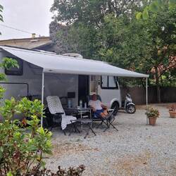 Dann endlich: Levanto. Ein kleines süßes Stück Paradies. Unser Campingplatz? Ganz am Ende der Welt. Also wirklich: letzter Platz, hinterletztes Eck… aber – nicht mal 50 Meter vom Strand entfernt! 😍