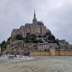 Am Horizont, ein Kilometer vor der Küste, erhob sich eine riesige, komplett bebaute Insel. Allein der Anblick dieser Festung aus dem Meer war wie ein Schlag – man musste sofort hin! Britti kreischte geradezu: "Dort! Das ist Mont-Saint-Michel!" 🥳 Kein Zögern, kein Diskutieren. Wir mussten diesen geheimnisvollen Berg erobern.