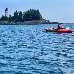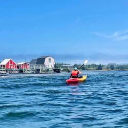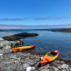 Spent the afternoon kayaking around the small islands at Blue Rocks. Caught a glimpse of the Blue Nose II under sail heading into Lunenberg.