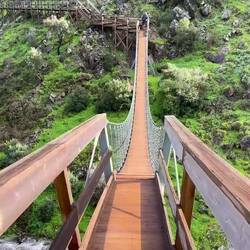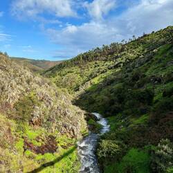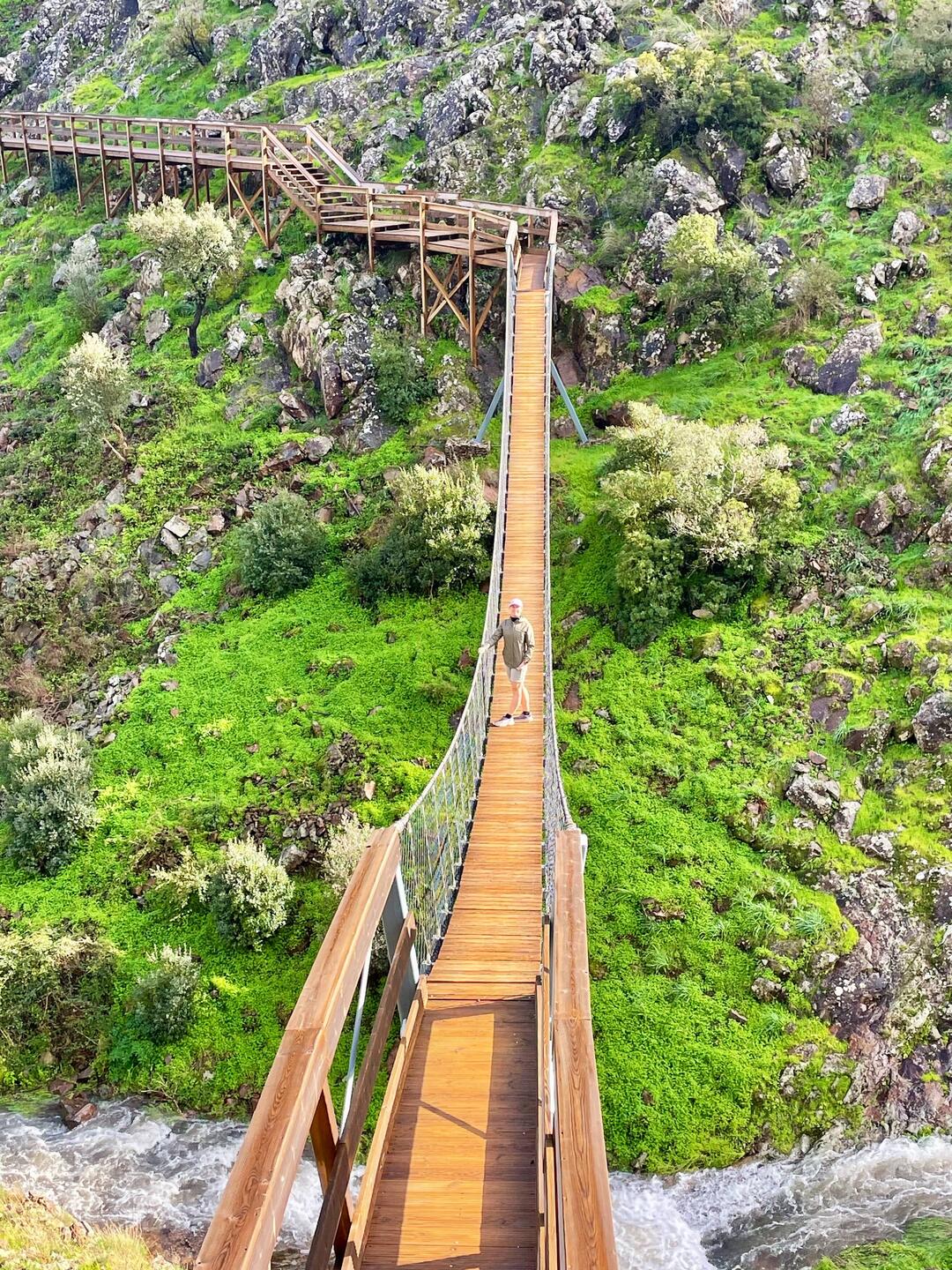 Drove into the hills and walked around Monchique. Then drove up to a trailhead and crossed the Barranco do Demo (valley) using the suspension bridge