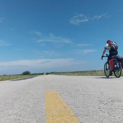 Manu hat die falsche Abfahrt genommen und nicht mehr zurück zur STraße gefunden. Ich muss dazu sagen: Manu ist auf einem Auge blind. Und auch wenn er zwar sagt, er sieht ganz normal, sind Situationen wie diese öfter passiert und ich bin doppelt froh, dass wir auf diesen letzten kräfte- und konzentrationszährenden Kilometern gemeinsam unterwegs sind. Von jetzt an fahren wir nicht mehr separat!