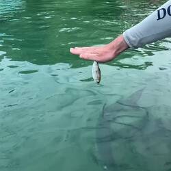 We started by feeding Tarpon (8 ft long fish) and frigate birds by hand. Quite an experience.