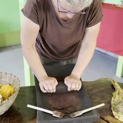 The roots of the company we visited are Maya, for whom chocolate was an important part of rituals and celebrations and very different from the palm oil/sugar rich product we are used to from home. We learned about the process of fermentation and roasting before making traditional Maya hot chocolate drink from the roast beans. These are ground to a paste, mixed with hot water and a little honey and chilli and cinnamon. They have been making chocolate this way since 1000 BC!