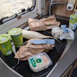 Nach der Abreise aus Ingolstadt und längerer eintöniger Fahrt über Bundesstraßen durch das westliche Bayern Richtung Schwaben entschließe ich mich zu einem kurzen Einkauf. Nun ist alles an Bord,Læs mere