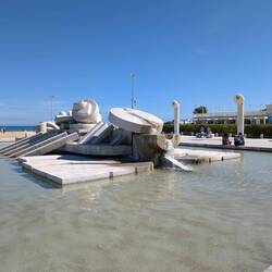 Pescara hat, wenn man Astrid folgt, zwei wesentliche Ansichtspunkte. Auf der einen Seite den Bahnhof mit der Lokomotive und auf der anderen Seite ein Denkmal an den Krieg am Wasser. Beides ist durchLæs mere