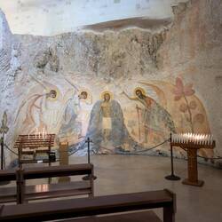 Die Grottenkirche interessiert mich dann doch, also stiefel ich hinunter und schaue einmal, was ist da so zu sehen gibt. Eine ganze Reihe Stufen führt tief in den Berg und ich habe das Vergnügen anBaca selengkapnya